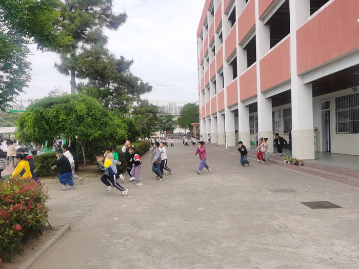 约30秒后,警报声音再次响起,现场指挥再次发出“紧急避险结束,现在发生火灾,立即组织疏散”的口令。全校学生都在两名老师的指挥下快速有序的疏散,各楼层通道重要位置均有老师作为安全员指挥学生安全撤离。从教室里按照指定逃生路线安全有序撤离至操场空旷地带。此次演练按预案顺利进行,整个过程用时不到3分钟时间。